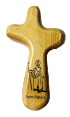 Our Saint Patrick holding cross takes our largest holding cross and laser engraves a picture of Saint Patrick on the bottom of the cross. The cross is 4" by 3" and is made to fit in your hand. Hand crafted out of Bethlehem Olive Wood in the Holy Land.