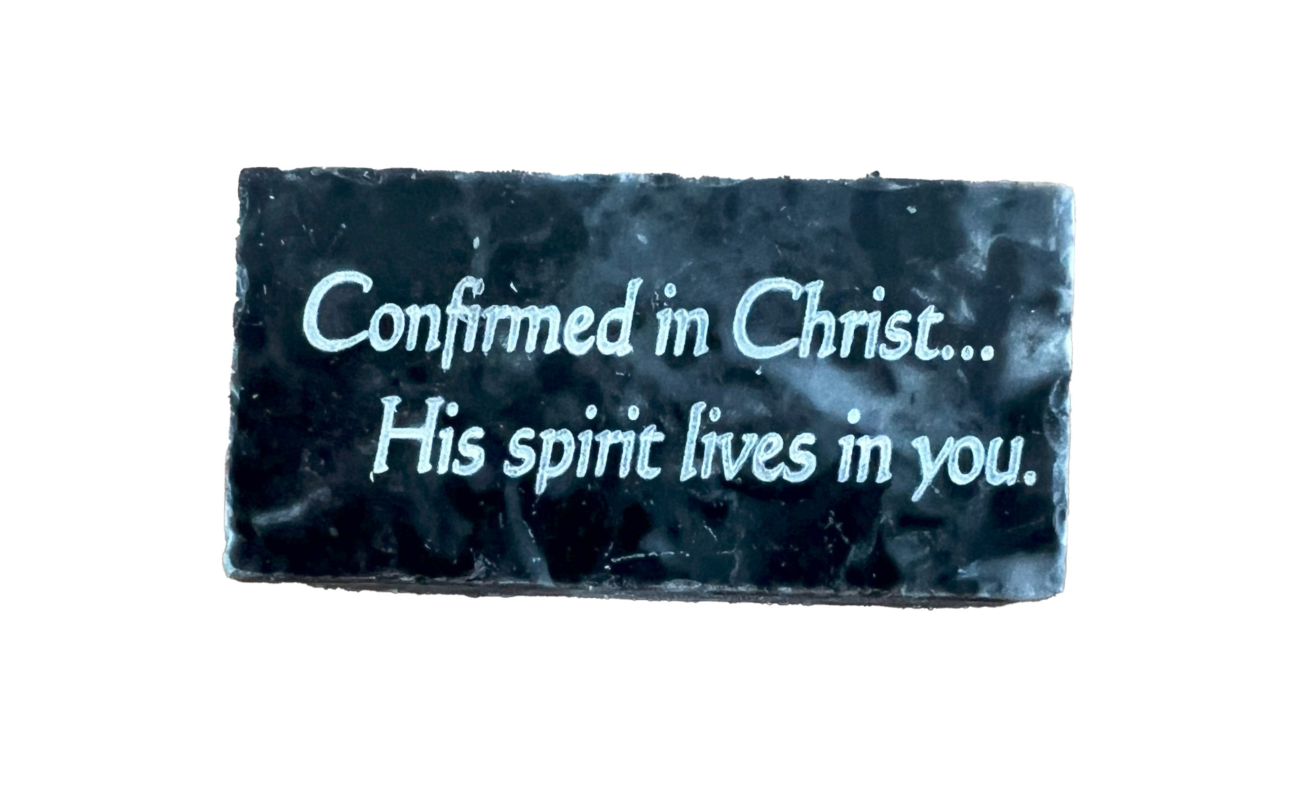 Confirmed in Christ...His spirit lives in you: 1" x 2" Jerusalem Stone Plaque